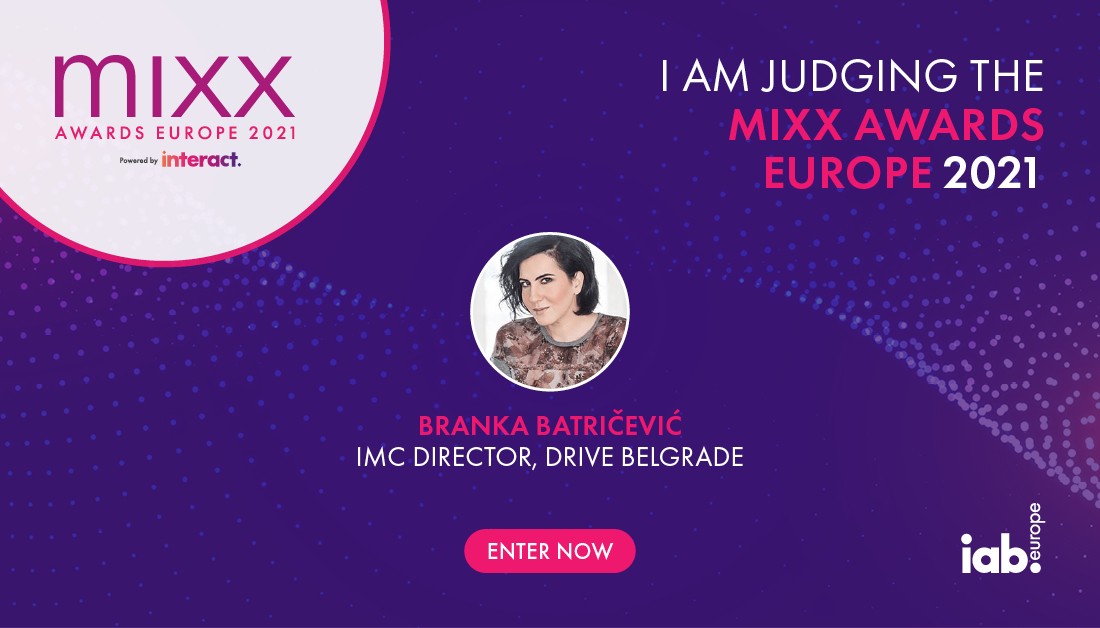 Branka Batričević, IMC direktorka agencije Drive, članica je evropskog žirija MIXX Awards koje dodeljuje IAB Europe. Nagrade MIXX najznačajnije su nagrade u oblasti digitalnog marketinga i za cilj imaju prepoznavanje najboljih digitalnih kampanja iz cele Evrope.