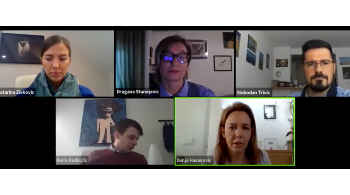 USAID-ov Projekat saradnje za ekonomski razvoj i ICT HUB organizovali su panel „Konkretno za SME“, koji je za temu imao radno prava i zaštitu podataka o ličnosti. Pored Dunje, učestvovali su i Katarina Živković i Boris Radojčić, advokati (SOG), a panel su vodili Dragana Stanojević i Slobodan Trivić, (USAID).