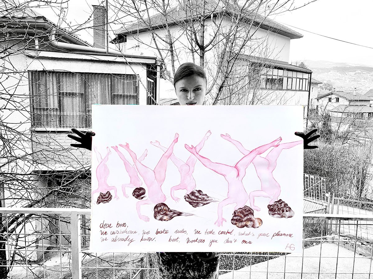 Sa zadovoljstvom Vas pozivamo na otvaranje izložbe Dear Boss autorki Anastasije Pavić i Alme Gačanin, u četvrtak 4.8.2022. u 18h u Galeriji Novembar. Umetnice će ovom prilikom izvesti zajednički performans Oral Fixation, koji se bavi temama rodne uloge žene, identitetom i položajem žene kao radnice.