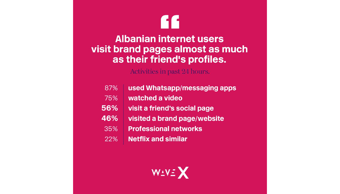 Albanija je po prvi put učestvovala u WAVE istraživanju, godišnjoj studiji koja istražuje i prati upotrebu društvenih medija globalno, kroz 81 zemlju, na 44 jezika.